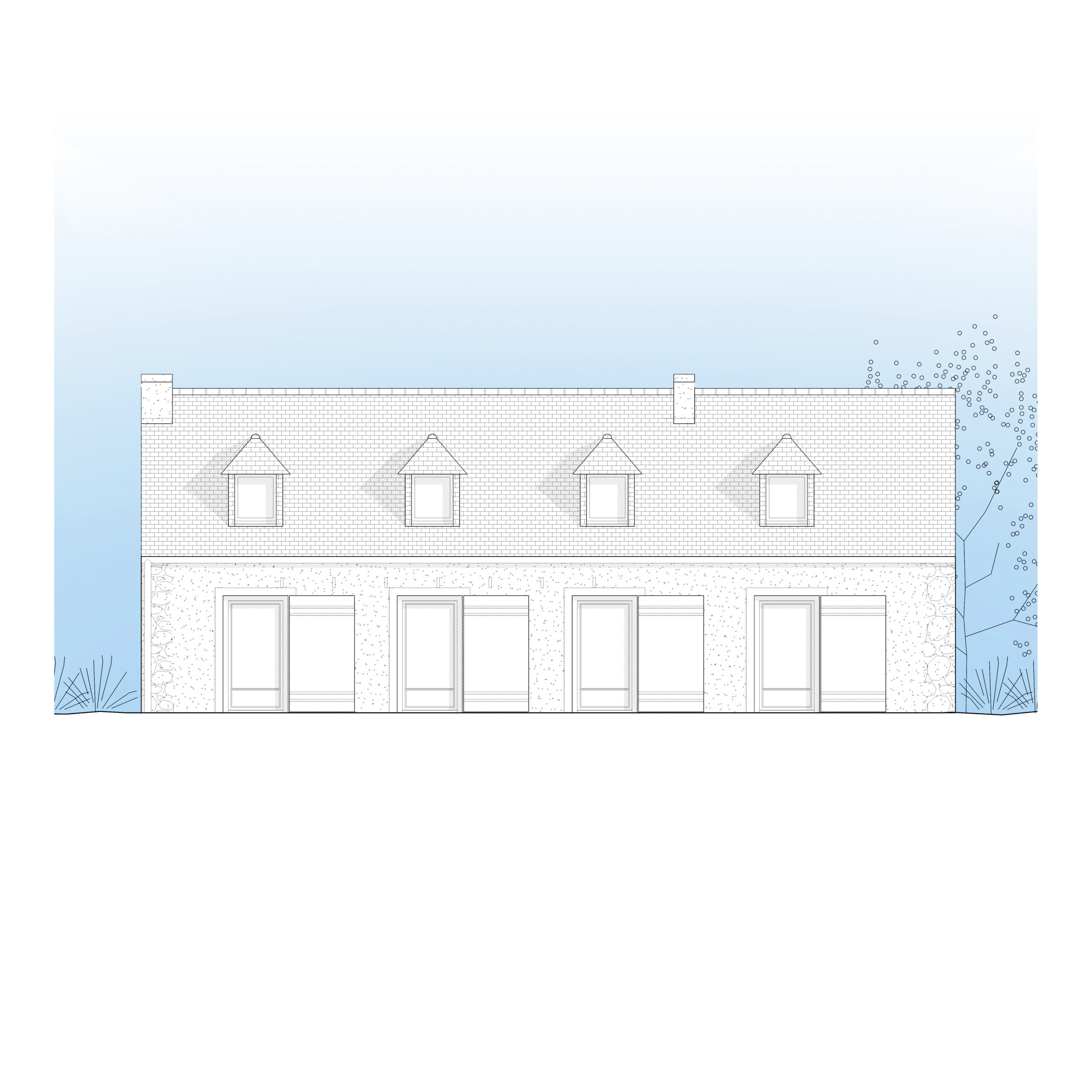 Le penty est une construction traditionnelle bretonne et la presqu’île de Crozon est un territoire préservé de cette région. Afin dans s’y ancrer finement, le projet de cette réhabilitation propose un travail sur le rythme régulier des ouvertures suivant les codes architecturaux du penty.