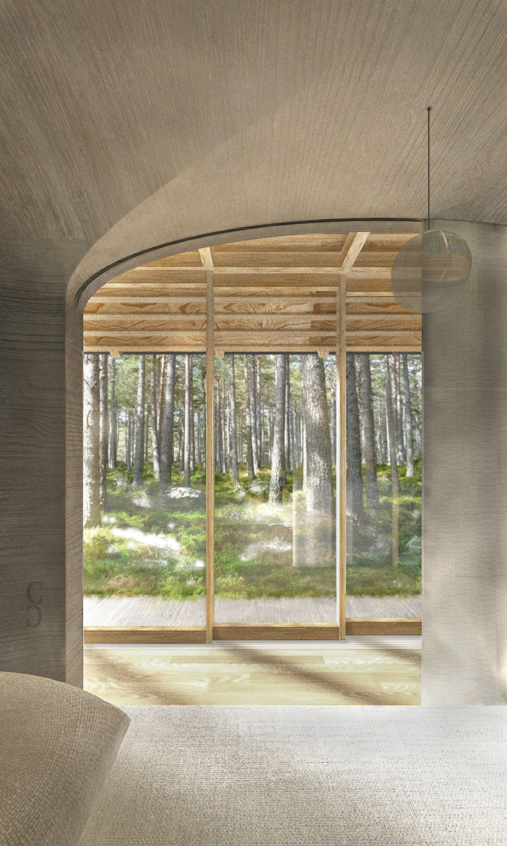 Projet de réflexion pour un refuge en forêt scandinave.